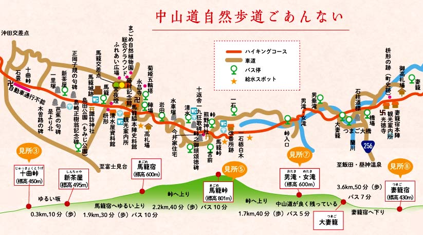 妻籠往復の時間 6:42 | 帰路へ | 13:17 | 13:21 |