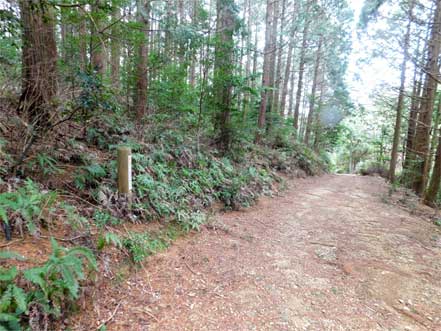 草堂寺からの時間 0:42 林道終点、坂になる |