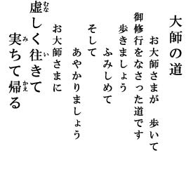 大師堂 ろうそく、線香を上げる 納め札(感謝御礼)を納める お賽銭を上げる 合掌 |